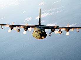 EE.UU. introdujo el martes 16 de octubre sus aviones AC-130 de las Fuerzas Especiales. Esta aeronave -versión mejorada del avión de transporte C-130 Hércules- se caracteriza por volar a baja altura y estar equipada con piezas de artillería que pueden efectuar más de 2.500 disparos por minuto.