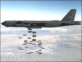 En esta imagen de archivo, un B-52 suelta bombas M117 de 750 libras. Su longitud es de 48,5m y altura de 12,4m, y su autonomía es de más de 14.000 km.