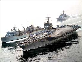 barco de apoyo USS Artic se acerca al USS Enterprise, seguidos