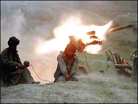 Los militantes talibán disparan desde un jeep habilitado como plataforma de lanzamiento de cohetes.