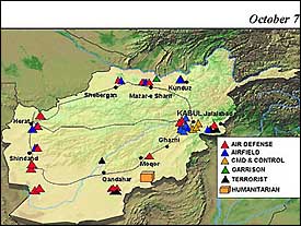 Este gráfico de los objetivos militares en Afganistán fue entregado por el Departamento de Defensa de EE.UU. el martes 9 de octubre.