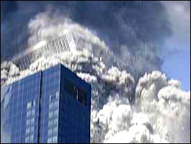 Ante la mirada atónita de millones de personas en el mundo y el pánico de los habitantes de la zona, una de las torres gemelas se desploma.