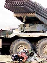 junto a un lanzador múltiple de cohetes, previo