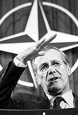 Luego de escuchar a Rumsfeld decir que los atentados del 11 de septiembre pueden ser un preludio de "décadas tumultuosas", sus pares en la OTAN decidieron adaptar las estructuras y medios de la Alianza para hacer frente al terrorismo.