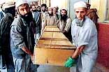 JALALABAD.- En un hospital de Jalalabad fueron reconocidos los cuerpos de los cuatro malogrados periodistas. En la foto, el traslado del cadáver de uno de ellos.