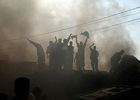 domingo 09 de noviembre: Irak: Varias explosiones se sienten en Bagdad sin que se conozca causa 17:01. Testigos dijeron que al menos un edificio en la parte occidental de la capital fue objetivo de los ataques. Explosión de mina en Bagdad mata a un soldado de EE.UU. 09:40. Aumentó a 36 el número de militares estadounidenses que han muerto en Irak durante este mes. |