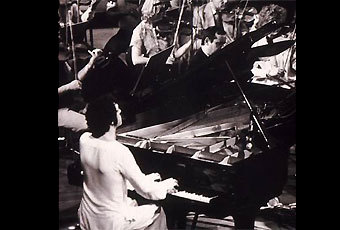 En la imagen vemos a Claudio Parra con la orquesta filarmónica