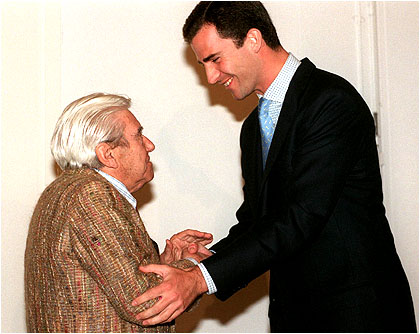 El Príncipe Felipe de Borbón saluda a Roberto Matta,