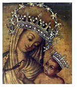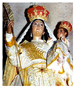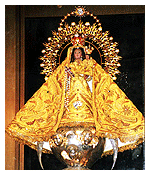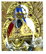 Virgen de los ÁngelesPatrona de Costa Rica Fiesta: 2 de agosto Un 2 de agosto de 1635, en Puebla de ios Pardos, la mestiza Juana Pereira se levantó al amanecer para ir a buscar leña. En su camino, sobre una gran roca, la india descubre una pequeña imagen de la Virgen, tallada en una piedra oscura. Con alegría Juana recoge el tesoro, el mismo que volvió a encontrar otras cinco veces en el mismo lugar, pues la imagen desaparecía de armarios, cofres y hasta del sagrario parroquial, para regresar tenazmente a la roca donde había sido encontrada. Así todos entendieron que la Virgen quería tener allí un lugar de oración. La "Negrita" como la llama el pueblo costarricense, fue coronada solemnemente el 25 de abril de 1926. La roca en la que fue hallada la imagen se ha ido gastando por el roce de las manos de los miles de fieles que llegan a venerar a la Madre. Debajo de esta piedra brota un manantial cuyas aguas recogen los que acuden en busca de ayuda. Virgen