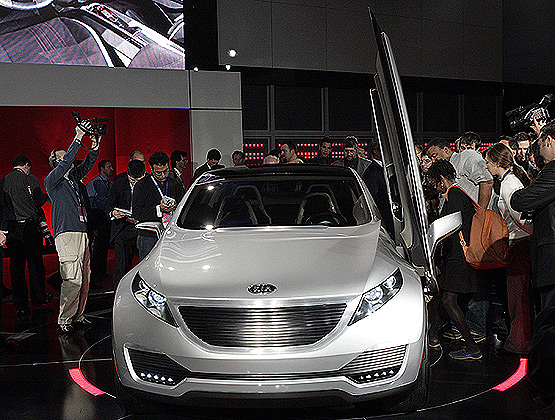 La marca coreana presentó este conceptual de grandes dimensiones. Se trata de un crossover (mezcla entre todoterreno y sedán) que posee tracción a las cuatro ruedas. El Kue monta un motor de gasolina de 4,8 litros V8, que desarrolla una potencia de 400 caballos de fuerza. Los diseñadores de este modelo, según la compañía, "han hecho especial hincapié" a la hora de situar las ruedas de 22 pulgadas en las esquinas de este vehículo.