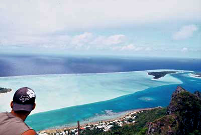 el estrecho y peligroso paso entre los corales que tuvieron que pasar para ingresar a esta pequeña isla.