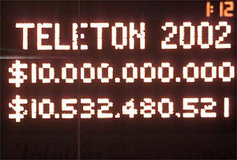 A la 1.12 de la madrugada el recinto estalló en una lluvia de fuegos artificiales y júbilo por haber superado la meta propuesta. En el marcador brillaba la cifra final de 10 mil 532 millones 480 mil 521 pesos.