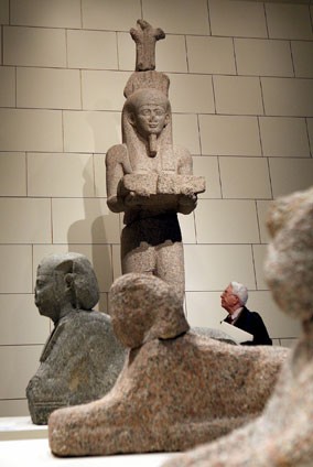 Un visitante observa una estatua del dios Hapi, en el salón de Arte y Exposiciones de la República Federal Alemana en Bonn. La muestra estará abierta hasta el 27 de enero de 2008. Ver más.