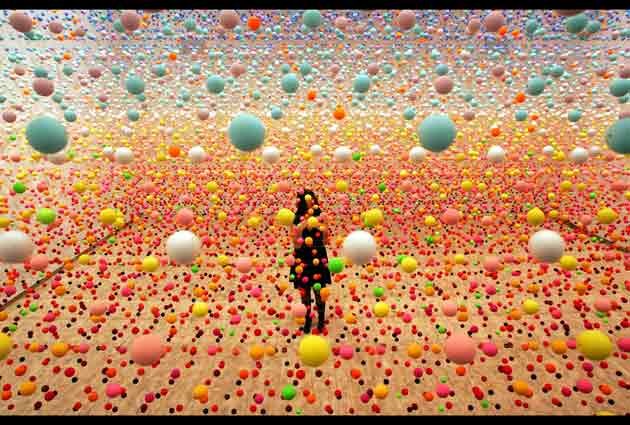 La artista Nike Savaas da los últimos retoques a su obra "Atomix. Lleno de amor, lleno de encanto", una creación realizada con 50 mil bolas de polistireno expuesta en la galería New South Wales, de Sydney. Las bolas vibran con las corrientes de aire generadas por 10 ventiladores y simulan un campo de colores cálidos esparcidos por el interior del recinto. Ver más.