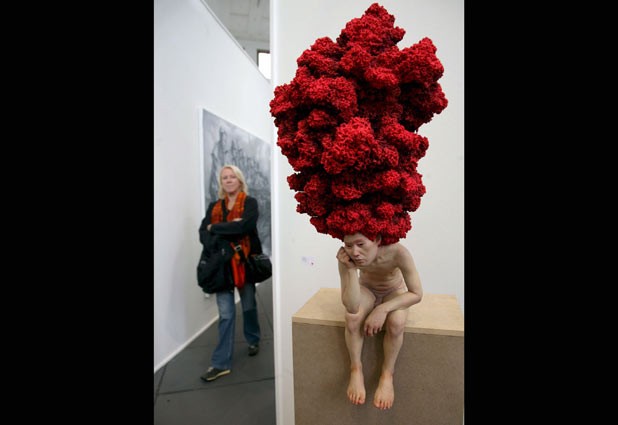 Una visitante pasa cerca de la escultura "Madame du Barry" de Koana Vasconcelos en Berlín, Alemania, durante la duodécima edición el Foro de Arte de Berlín, una feria internacional de arte contemporáneo que finalizará el 3 de octubre. Ver más.
