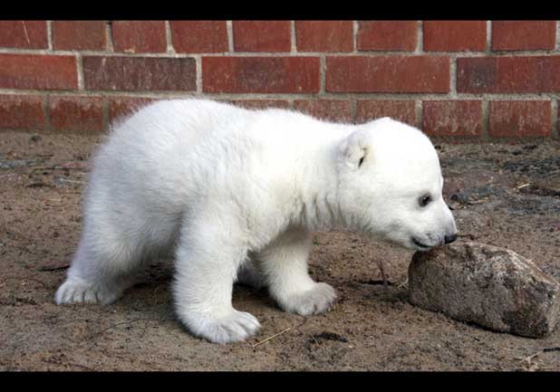 Photo released by the Belin Zoo shows polar bear "Knut" playing in a zoo facility. Knut, the first polar bear to be born in the animal park in over 30 years, spent his first 44 days in an incubator after being rejected by his mother. Knut was born on December 5, 2006. The Berlin Zoo dismissed claims today that the cub would and should be put down on humanitarian grounds. Ver más.