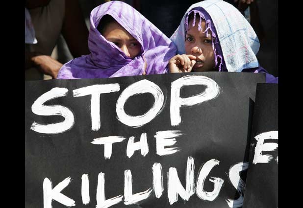 Two Filipino girls attend a rally today in downtown Manila. An international human rights group has accused the Philippines government and its U.S. ally of adopting counterinsurgency policies that set off a wave of extrajudicial killings, making them liable for "crimes against humanity". Ver más.