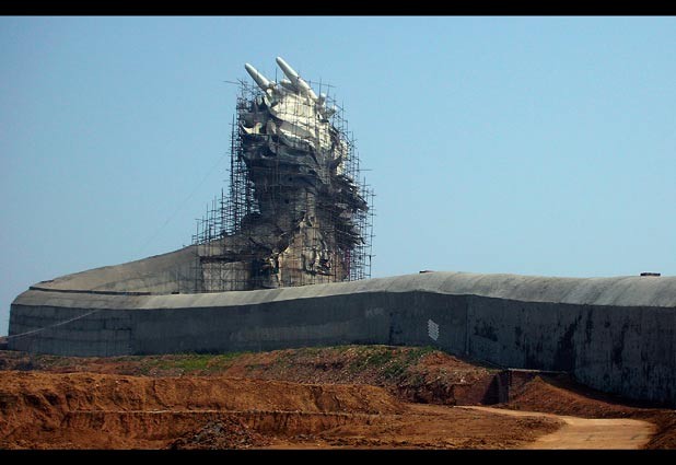 In the image is seen the "Ancestral Dragon", whose partially completed head rises nine meters (30 feet) above ground in Zhengzhou, central China´s Henan province. Investors are building a giant 300 million USD sculpture of a dragon they say will be the largest in the world when completed by 2009 to mark the 60th anniversary of the People´s Republic founding. Ver más.