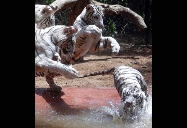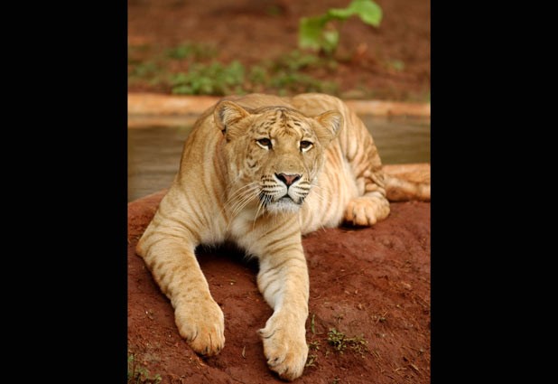 In the photo a "liger" named An An rests on the ground in the Hainan Tropical Wildlife Park in Haikou, capital of south China´s Hainan province. Liger is the hybrid of a male lion and a female tiger. Ver más.