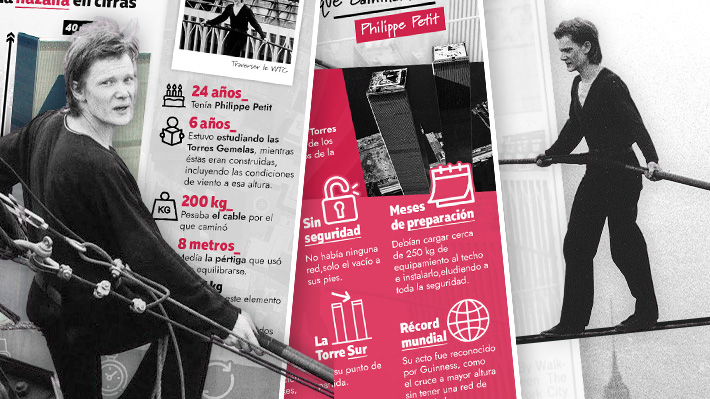 El francés Philippe Petit sorprendió al mundo cuando una mañana de 1974, sin pedir permiso alguno, puso un cable entre las dos torres del World Trade Center para uno de los actos más osados en la historia del funambulismo.