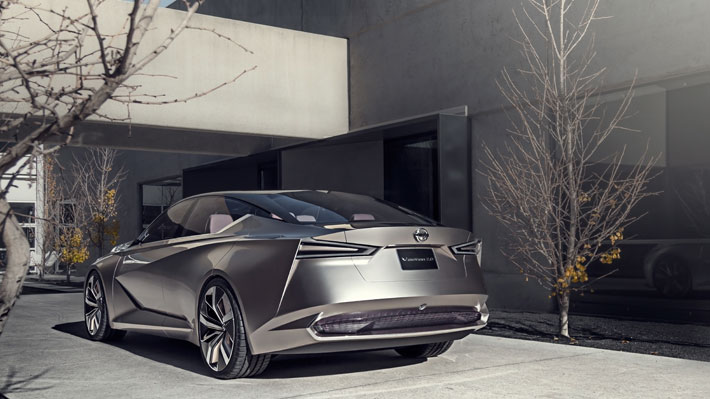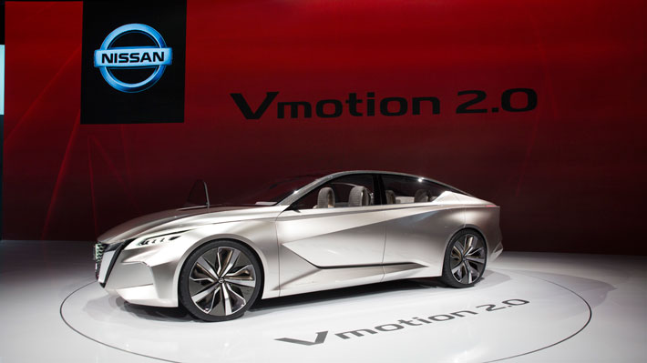 Nissan Vmotion 2.0 es la evolución del icónico diseño frontal “V-motion” que puede encontrarse hoy en día en muchos productos de Nissan. El color Cobre Plateado, que también fue galardonado, es una mezcla de cobre con otros metales, lo que crea un efecto de capas con diferentes matices y reflejos proyectados hacia diferentes ángulos.