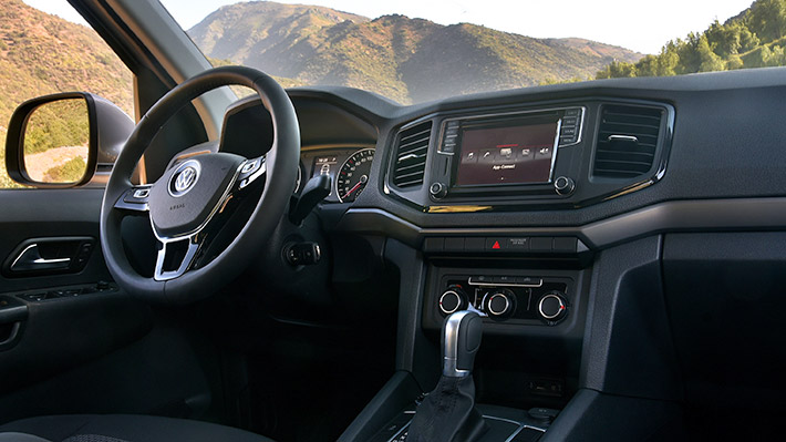 Los mayores cambios de la nueva Amarok se pueden observar en su interior. De hecho, se rediseño por completo el panel de instrumentos, con nuevas salidas de aire rectangulares, similares con los modelos de última generación de la marca. También la nueva versión cuenta con una pantalla multimedia. La marca la ha bautizado con el nombre de Discover Media, la cual mide 6,3 pulgadas y concentra las funciones del GPS, el audio y el Bluetooth. También cuenta con conectividad USB, Aux, SD, CD y MirrorScreen. A través de la App Connect es posible ejecutar las funciones de un smartphone o tablet con sistemas Apple Car Play o Android Auto.