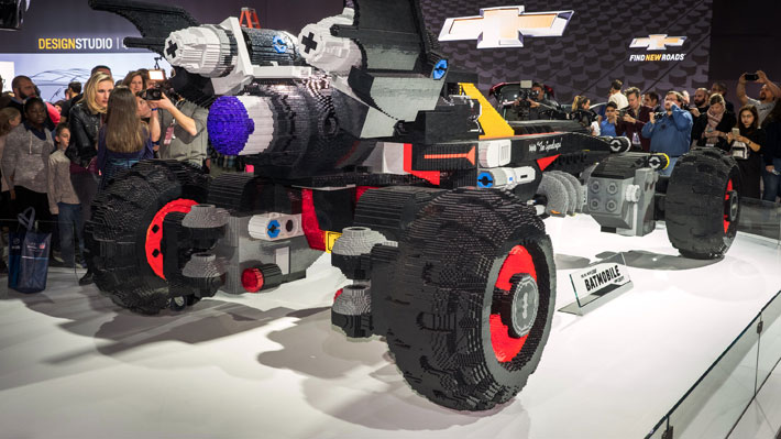 Ad portas del estreno de "Lego Batman: La Película" (el spin-off de The Lego Movie), Chevrolet aprovechó el Salón de Detroit para mostrar su última creación, nada menos que un Batimóvil tamaño real hecho de LEGO.