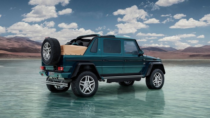 El Maybach G650 Landaulet posee atributos de un todoterreno, como los 450 milímetros de despeje del suelo, caja reductora y diferenciales autobloqueantes delantero, trasero y central. Es impulsado por un bloque V12 de 6 litros capaz de producir 630 cv y nada menos que 1.000 Nm de par máximo. El trabajo de este conjunto le permite llegar a los 100 km/h en menos de seis segundos.