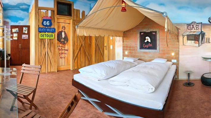 Las piezas del Hotel V8 son cuatro estrellas y en ellas se puede encontrar camas con forma de autos, accesorios, sillones y sillas y hasta baños temáticos con el tema tuerca. Acá les dejamos una completa galería con alguna de sus habitaciones.