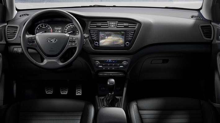 El habitáculo del Hyundai i20 Active presenta un diseño sobrio, sin estridencias ni sorpresas. La calidad de los ajustes y terminaciones es la ya habitual en Hyundai, bastante buena, mientra que la materialidad es sencilla. Esta versión tiene unos toques de color naranja en los asientos, salidas de aire y el pomo de la palanca de cambios, que dan alegría al ambiente, pero no mucha.