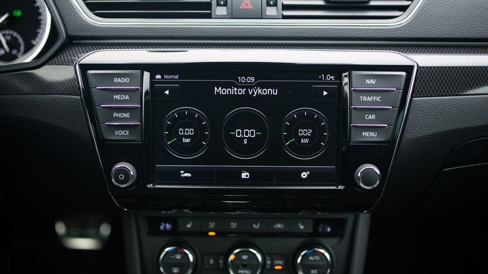 En cuestiones de tecnología, el Superb es el primer modelo de la marca en contar con Control Adaptativo del Chasis (DCC) asociado al Driving Mode Select, un asistente que permite que el modelo se adapte a las condiciones de la ruta y estilo de manejo. Así también, cuenta con el sistema de Control Crucero Adaptativo, que regula la velocidad sin interferencia del conductor. Con este sistema, el auto puede sostener una velocidad y frenar si es que un vehículo se pone por delante.