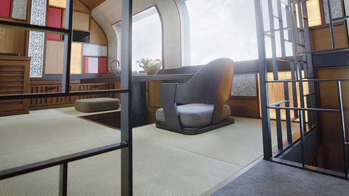 Todos los detalles de este fastuoso tren fueron creados por Ken Kiyoyuki Okuyama, ex diseñador de Ferrari, Maserati, Porsche y General Motors.