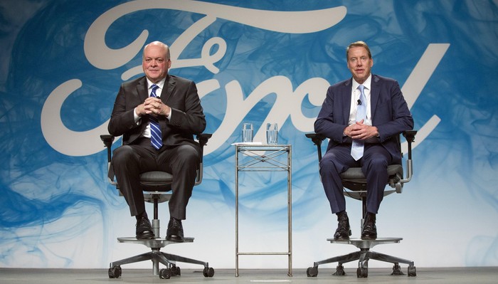 Jim Hackett, el nuevo CEO de Ford, junto a Bill Ford, presidente de la empresa.
