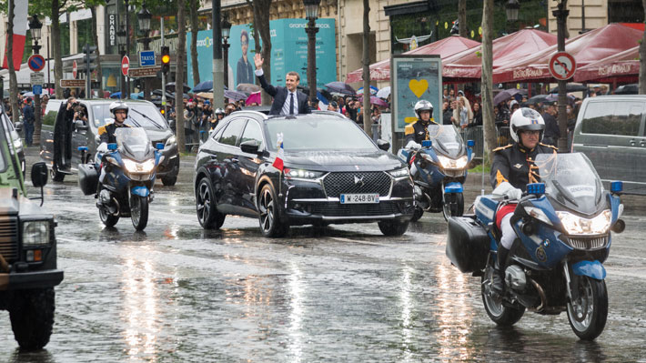 El recientemente asumido presidente de Francia, Emmanuel Macron, optó por trasladarse en el DS7 Présidentiel, modelo que estrenó en sociedad para el cambio de mando.