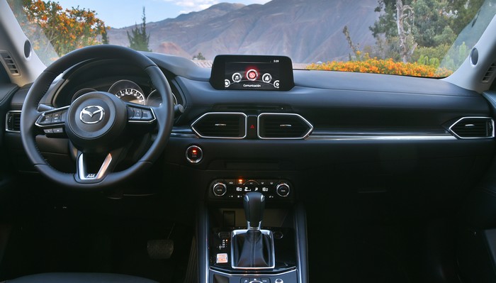 El CX-5 incluye sistemas de seguridad activa como monitorio de punto ciego y de tráfico cruzado trasero, sistema de frenado inteligente en ciudad, advertencia de mantenimiento de carril, alerta de cansancio del conductor, entre otros.