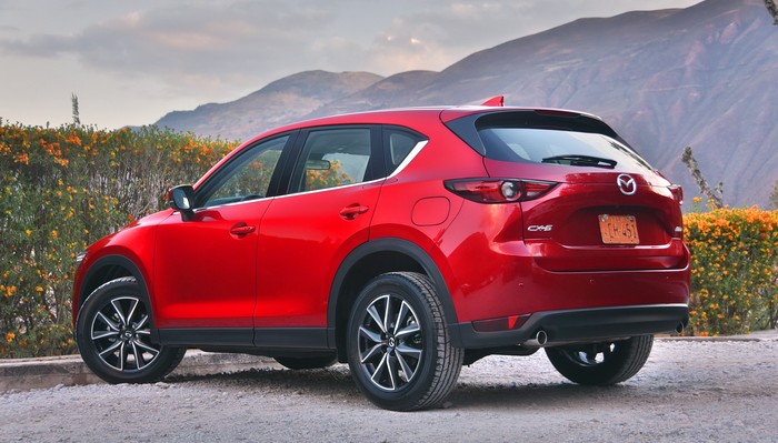 Además, el pilar A fue desplazado en 35 mm, lo que le entrega un aspecto más deportivo. En la parte trasera se nota una similitud con el hermano mayor, el CX-9, ya que el nuevo portalón eléctrico –capaz de abrirse completamente en siete segundos- posee rasgos que enfatizan la anchura del CX-5.