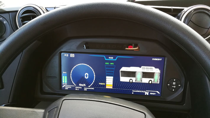 A primera vista, el vehículo luce como cualquier otro bus nuevo por afuera, no obstante, las cosas cambian al ingresar a este. Entre los aspectos tecnológicos que incorpora destacan un contador automático de pasajeros, cámaras de videovigilancia y aire acondicionado.