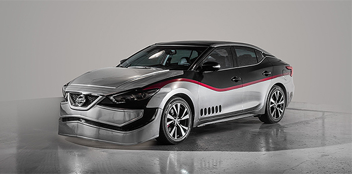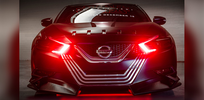 El Nissan Maxima se convirtió en el preferido de "Star Wars". Y es que el personaje Captain Phasma, uno de los más recordados de "El Despertar de la Fuerza" (2015), también debuta en el mundo tuerca con esta versión revestida con armadura plateada y una máscara. Todo acompañado de furiosas líneas rojas y un negro profundo.