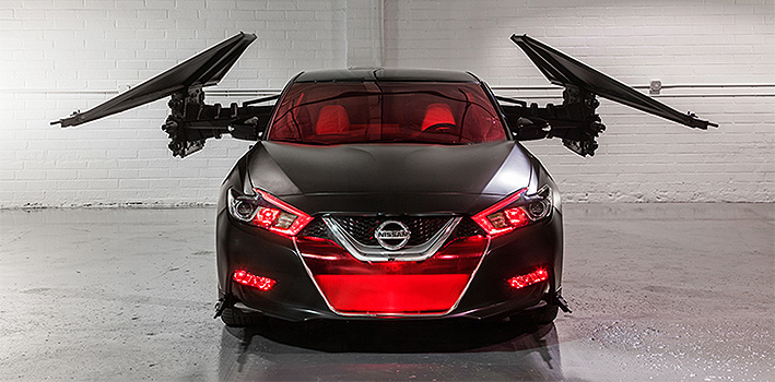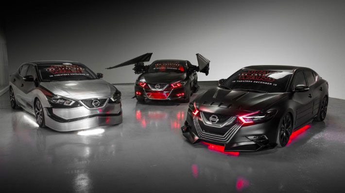 Pero el Nissan Maxima también puede tener otro estilo. Esta variante del vehículo replica la nave TIE Silencer de Kylo Ren, personalizado con "cañones láser y lanzadores de misiles en las alas del automóvil", según indica la marca japonesa.