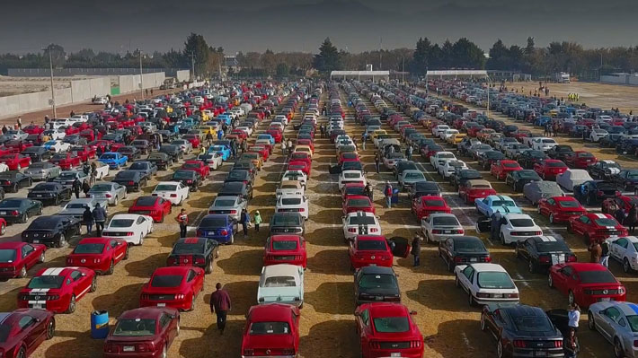 La gran “estampida Mustang”, como fue bautizada, logró congregar a 960 automóviles en el Centro Dinámico Pegaso en Toluca, México, donde avanzaron por 3,2 kilómetros.