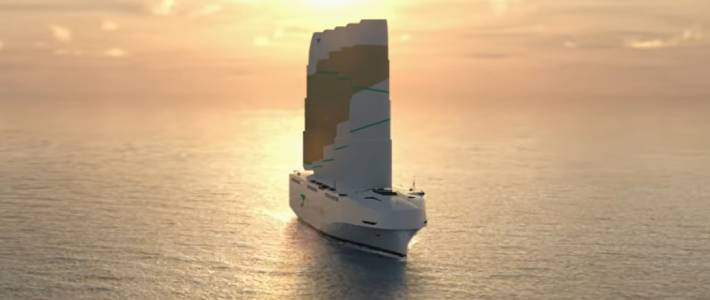 Lo primero que llama la atención es que la enorme embarcación recurre al viento para moverse pero con velas de última generación.