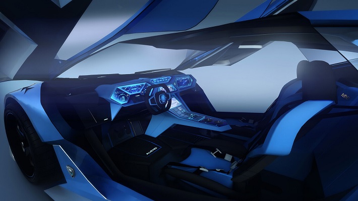 Las imágenes muestran un habitáculo futurista, con varias pantallas en distintos lugares, asemejándolo más a una nave espacial que a un vehículo terrestre.
