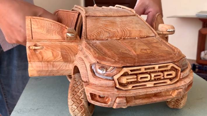 Un conocido artesano carpintero de Estados Unidos llamó nuevamente la atención de los fanáticos tuercas al construir un modelo a escala de la popular Ford Ranger Raptor usando un simple bloque de madera.