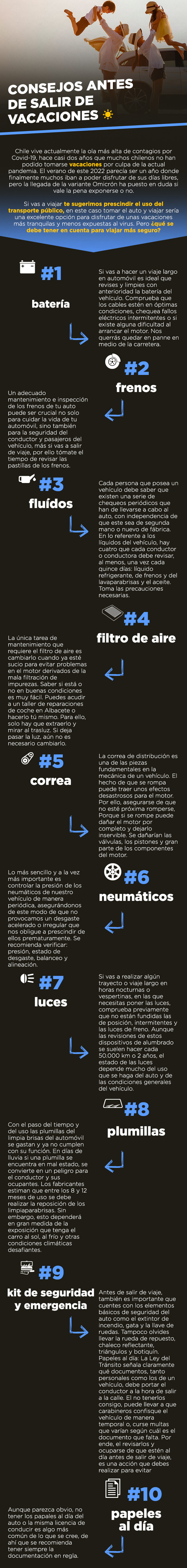 Si vas a viajar te sugerimos prescindir el uso del transporte público, en este caso tomar el auto y emprender esa travesía sería una excelente opción para disfrutar de unas vacaciones más tranquilas y menos expuestas al virus. Pero ¿qué se debe tener en cuenta para viajar más seguro en tiempos de pandemia? Te lo contamos en la siguiente infografía: