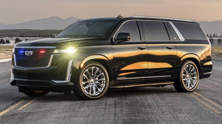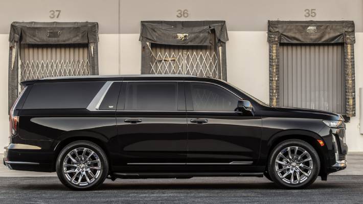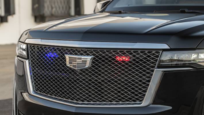 Desde el exterior, el SUV luce como un Escalade normal, aún cuando destacan sus cristales polarizados, una postura más baja y un juego de luces adicionales emplazadas en la parrilla.