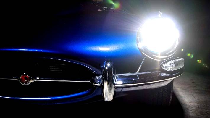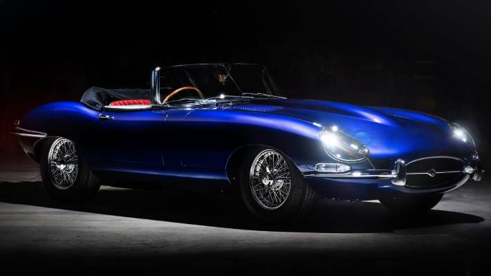 Este E-Type Roadster restomod luce una carrocería con un tono azul oscuro a medida, inspirado en el color azul de la Union Jack, es decir, la bandera de Reino Unido. También hay elementos modernos, como faros LED sustituyendo a los halógenos originales.