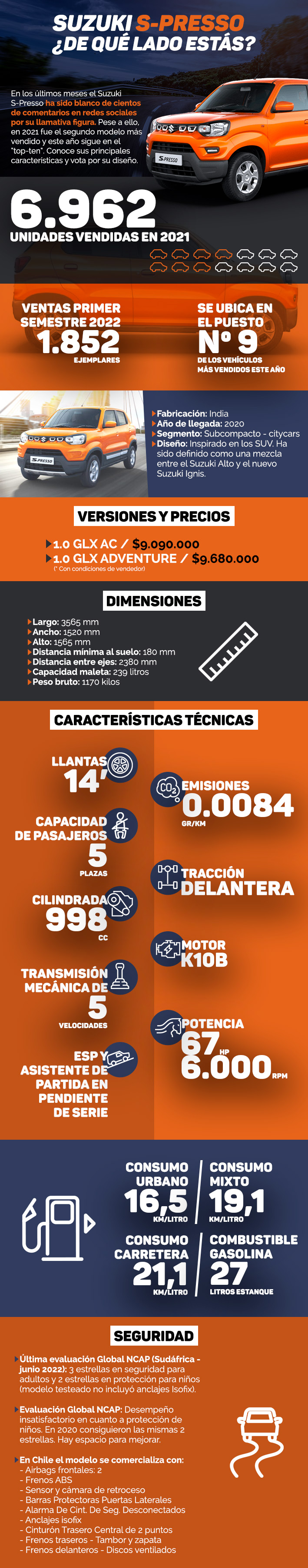 Infografía: Este es el Suzuki S-Presso, el auto más comentado de redes sociales en Chile