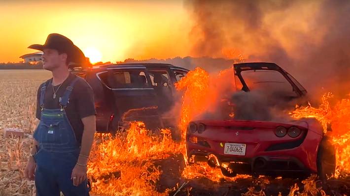 El youtuber estadounidense WhistlinDiesel se ha vuelto popular por sus contenidos relacionados al mundo motor con atrevidas acrobacias y salvajes personalizaciones, donde los autos suelen pasarlo mal. No obstante, en su último registro las cosas se salieron de control al punto que su costoso Ferrari F8 Tributo y una minivan Chrysler Pacifica resultaron totalmente consumidos por las llamas.