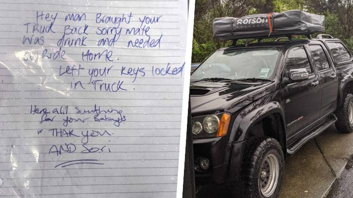 "Hola amigo, disculpa, pero tomé prestado el auto. Estaba un poco borracho", dice la carta dejada por el desconocido sujeto.