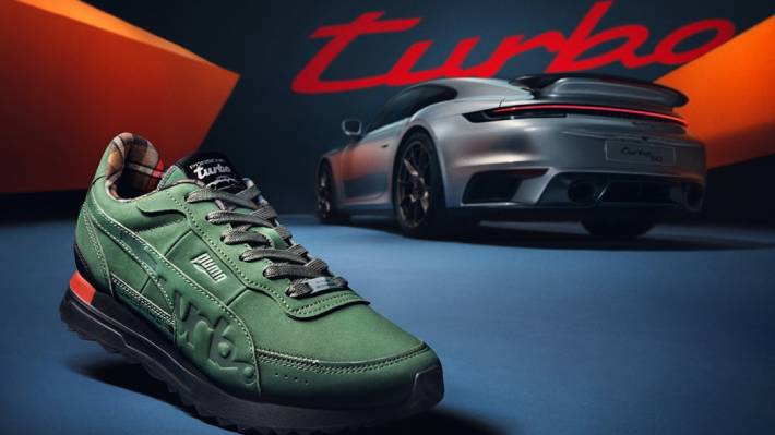 Por su parte, las “Puma Porsche Turbo 930” rinden homenaje al 911 Turbo de Ferry Porsche, también hijo del fundador de la automotriz, de 1976. Estas zapatillas son de color verde Oak metalizado, con el forro interior en el mismo patrón de cuadros escoceses.